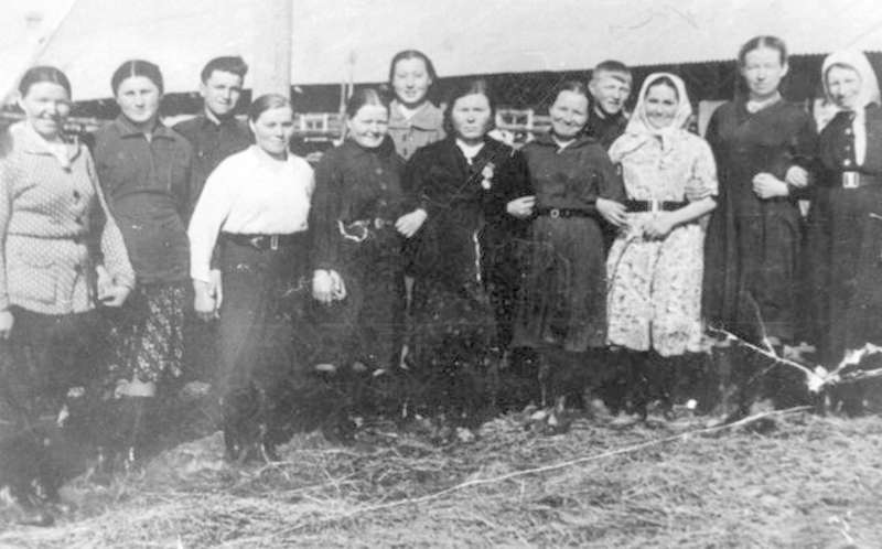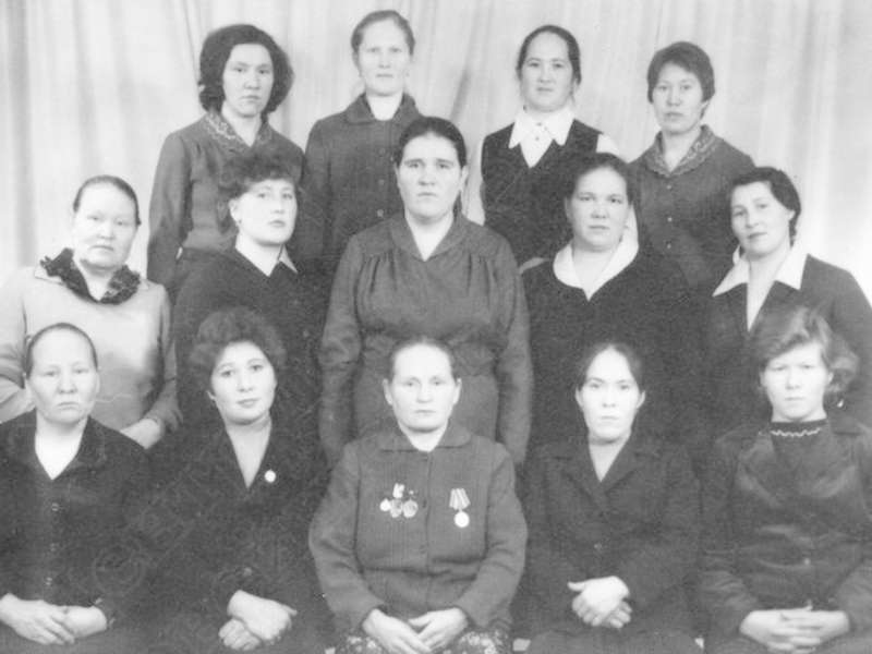 —//— | Доярки передовой фермы колхоза "Путь к коммунизму". В центре - Лидия Яковлевна Пантюхина, лучшая доярка Республики. Копия | позитив, фотобумага, удовлетворительное | ![]() |