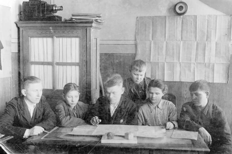 —//— | Бригада Александра Килина (ТЭЦ) - лучшая комсомольско-молодежная бригада завода, на занятии политкружка. Оторван край | позитив, фотобумага, удовлетворительное | ||