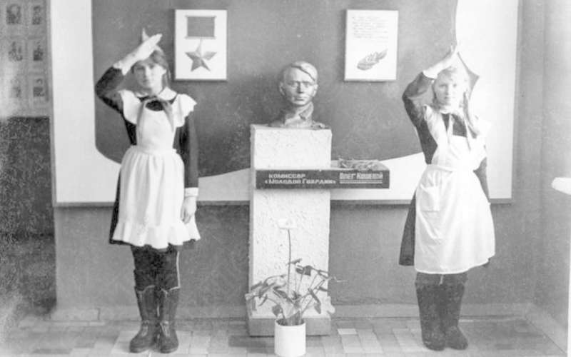 —//— | Клуб интернациональной дружбы "Красная гвоздика" Кезской средней школы № 1. Альбом. Минута молчания в честь памяти О.В.Кошевого. Слева направо: Емельянова Надя, Ившина Ирина, 7"а" класс | 2 февраля 1985 | позитив, фотобумага, удовлетворительное |