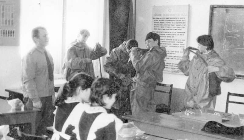 —//— | Клуб интернациональной дружбы "Красная гвоздика" Кезской средней школы № 1. Альбом. Кожевников А.А., военрук школы ведет занятия по гражданской обороне в 9"а" классе | ~1985 г. | позитив, фотобумага, удовлетворительное | |