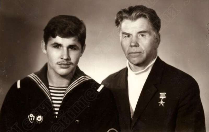 —//— | Герой Советского Союза Евдокимов Г.П. с сыном Сергеем - моряком Черноморского флота. | ~1971 г. | позитив, фотобумага, удовлетворительное |