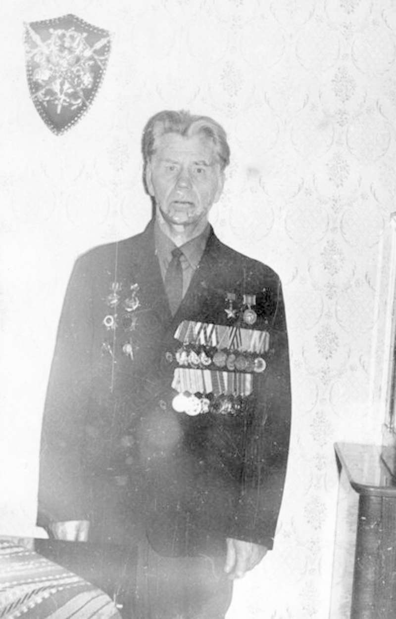 —//— | Герой Советского Союза Евдокимов Г.П. дома в военной форме с орденами и медалями. Портрет. Копия. Список 1 | позитив, фотобумага, удовлетворительное | ||