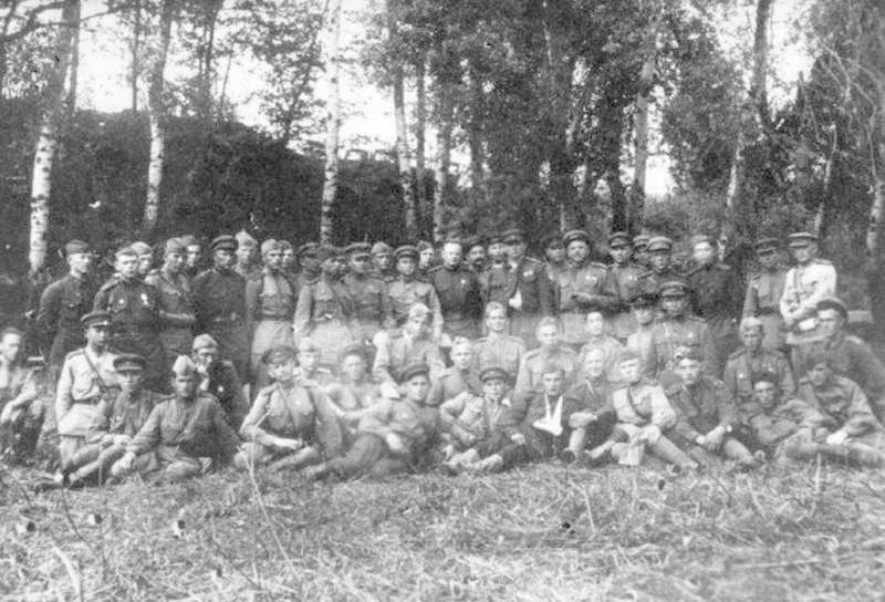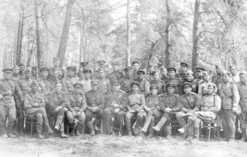 Коллекция документов Музея истории комсомола Удмуртии | 172-я Павлоградская Краснознаменная ордена Суворова стрелковая дивизия. Личный состав дивизии. Слева направо: Рябинин Л.Л., подполковник, Бородин В.Н., полковник, зам. командира дивизии по политической части; Аптекарев Д.С., гвардии-майор, зам.начальника политического отдела; Стришевский, майор; Жебрак, майор, секретарь парткома | ~1943 г. | позитив, фотобумага, удовлетворительное | |