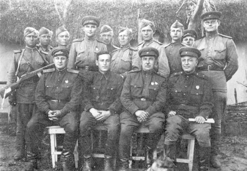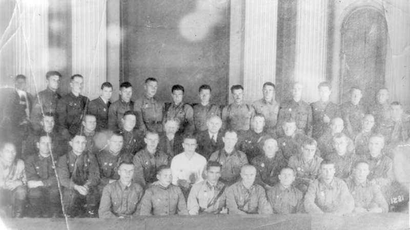 —//— | Участники церемонии вручения орденов и медалей артиллеристам, танкистам, летчикам, партизанам. Среди них: Виталий Александрович Мельников, комиссар артдивизиона (2-й ряд 2-й справа), Михаил Иванович Калинин, председатель Президиума Верховного Совета СССР (3-й ряд 7-й справа), Виллис Лацис, писатель, председатель Президиума Верховного Совета Латвийской ССР. Копия. Края порваны | 25 сентября 1942 | позитив, фотобумага, удовлетворительное | |