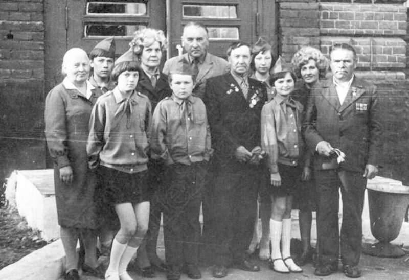 —//— | Делегация представителей школы слабовидящих детей, занявших I-е место во Всесоюзной экспозиции пионеров и школьников "Моя Родина- СССР". В 1-м ряду, 3-й слева- Рыжов Михаил Яковлевич, первый председатель Сарапульского окружного комитета ВЛКСМ, организатор комсомола г.Сарапула, узник баржи смерти | ~1979 г. | позитив, фотобумага, удовлетворительное | |