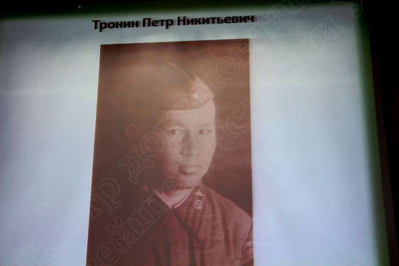 —//— | Церемония закрытия республиканского мероприятия "Вахта памяти - 2017" поисковых отрядов Удмуртии, посвященное 25-летию Удмуртской республиканской молодежной общественной организации "Долг", в актовом зале Ижевской государственной медицинской академии. Электронный образ портретной фотографии участника Великой Отечественной войны 1941-1945 гг., уроженца д.Нижний-Тыловай Дебесского района Тронина Петра Никитьевича | 25 ноября 2017 | JPEG, эл.ф/док., диск, хорошее | |