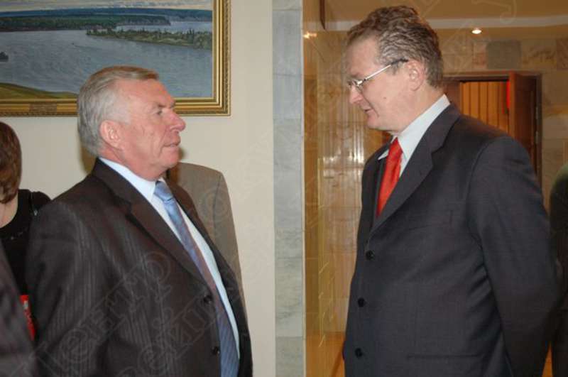 Коллекция фотодокументов | Торжественный прием в зале заседаний Госсовета УР, посвященный вручению премий "Признание республики". Участники приема (слева направо): Председатель Госсовета УР Семенов Игорь Николаевич, депутат Госсовета УР, главный редактор газеты "Известия УР" Касимов Энвиль Владимирович | 7 ноября 2007 | JPG, эл.фотодок, диск, удовлетворительное |