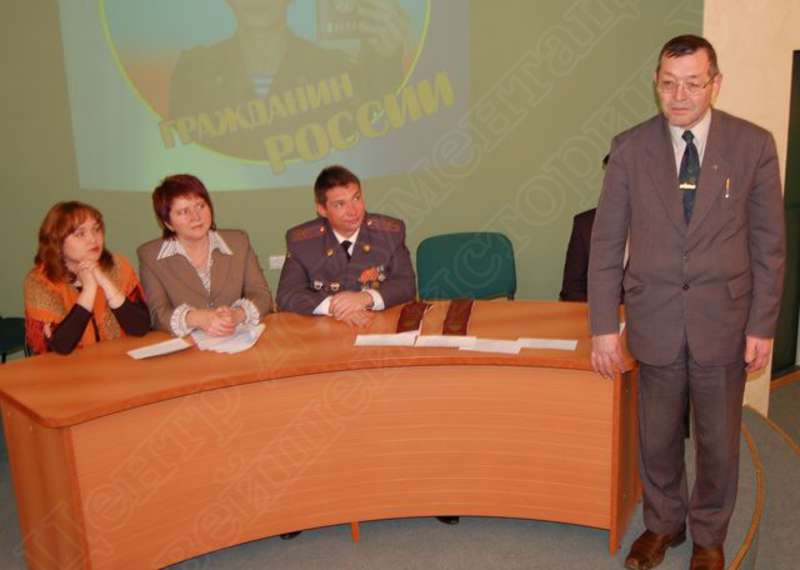 —//— | Республиканская акция "Я - гражданин России!" в Музейно-выставочном комплексе стрелкового оружия им. М.Т. Калашникова. Выступает конструктор стрелкового оружия Драгунов Михаил Евгеньевич (справа) | 7 декабря 2007 | JPЕG, эл.фотодок, диск, хорошее |