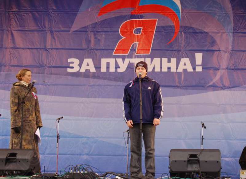 —//— | Митинг Удмуртского регионального отделения Всероссийской политической партии "Единая Россия" в поддержку Президента РФ Путина Владимира Владимировича на Центральной площади г. Ижевска. Выступает чемпион мира по биатлону Кобелев Алексей Александрович (справа) | 4 ноября 2007 | JPЕG, эл.фотодок, диск, хорошее |