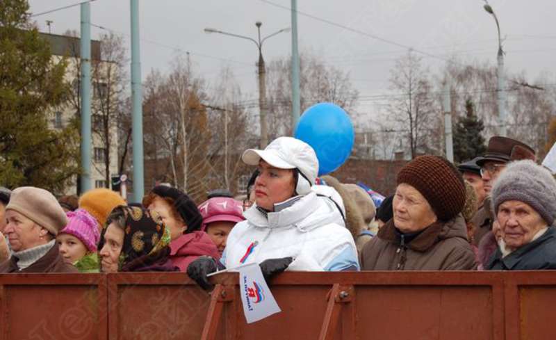 —//— | Митинг Удмуртского регионального отделения Всероссийской политической партии "Единая Россия" в поддержку Президента РФ Путина Владимира Владимировича на Центральной площади г. Ижевска. Участники акции. В центре председатель постоянной комиссии по социальной политике Госсовета УР Кривилева Светлана Петровна | 4 ноября 2007 | JPЕG, эл.фотодок, диск, хорошее |