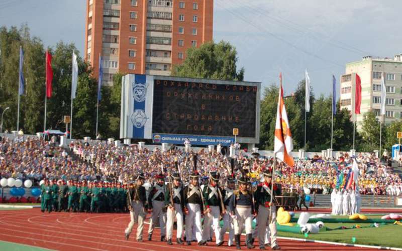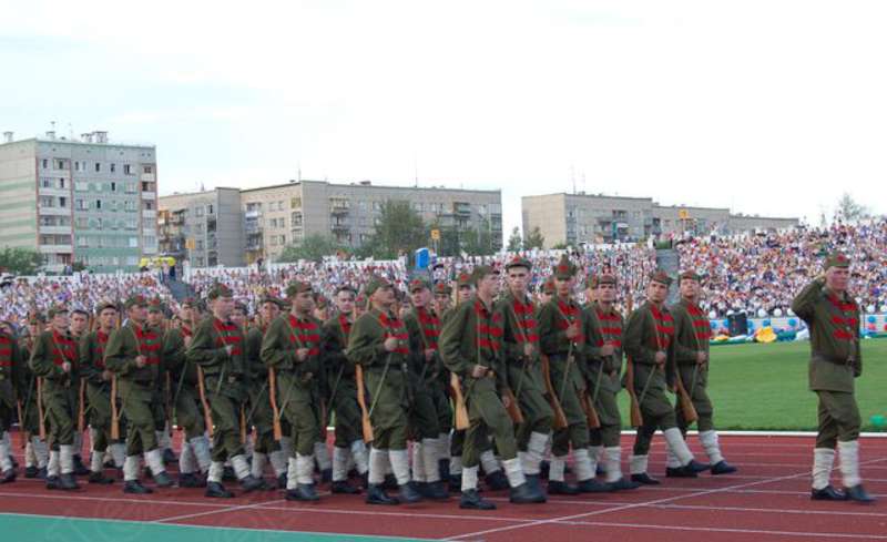 —//— | Театрализованное представление в честь празднования 200-летия Ижевского оружия и 60-летия автомата Калашникова на Центральном республиканском стадионе. Участники праздника - ветераны Федерального государственного унитарного предприятия "Ижевский механический завод" | 7 августа 2007 | JPЕG, эл.фотодок, диск, хорошее |