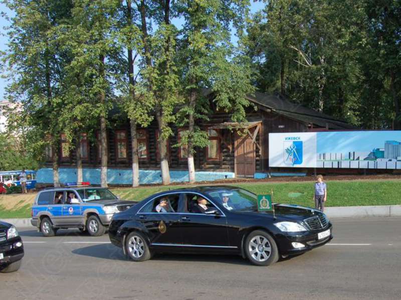 —//— | Освящение Свято-Михайловского собора г. Ижевска Святейшим Патриархом Московским и всея Руси Алексием II. Автомобиль со Святейшим Патриархом Московским и всея Руси Алексием II при подъезде к собору. Снимок 1 | 5 августа 2007 | JPЕG, эл.фотодок, диск, хорошее |