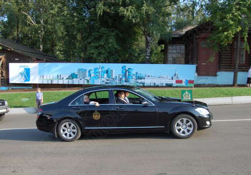 —//— | Освящение Свято-Михайловского собора г. Ижевска Святейшим Патриархом Московским и всея Руси Алексием II. Автомобиль со Святейшим Патриархом Московским и всея Руси Алексием II при подъезде к собору. Снимок 2 | 5 августа 2007 | JPЕG, эл.фотодок, диск, хорошее |