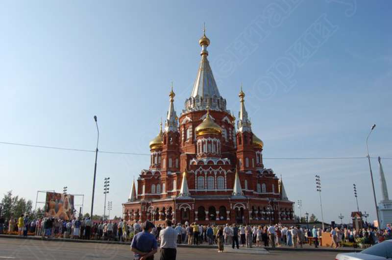 —//— | Освящение Свято-Михайловского собора г. Ижевска Святейшим Патриархом Московским и всея Руси Алексием II. Жители г. Ижевска у собора. Снимок 1 | 5 августа 2007 | JPЕG, эл.фотодок, диск, хорошее |