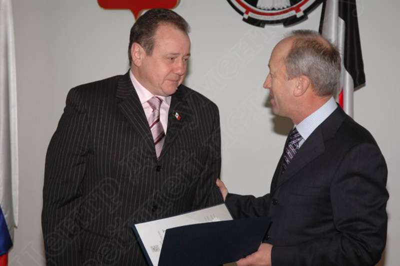 —//— | Церемония награждения победителей Всероссийского конкурса "100 лучших товаров России". Диплом победителя конкурса генеральному директору Открытого акционерного общества "Птицефабрика "Вараксино" Зенину Владимиру Николаевичу вручает Председатель Правительства УР Питкевич Юрий Степанович (слева направо) | 9 декабря 2005 | JPЕG, эл.фотодок, диск, хорошее |
