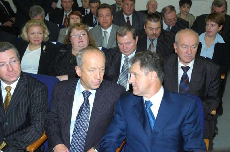 —//— | Выборы руководителей муниципального образования на заседании сессии депутатов Городской Думы Ижевска. Участники заседания (слева направо): в первом ряду - глава Администрации муниципального образования "город Ижевск" Ушаков Александр Александрович, Председатель Правительства УР Питкевич Юрий Степанович, Президент УР Волков Александр Александрович | 27 октября 2005 | JPЕG, эл.фотодок, диск, хорошее |