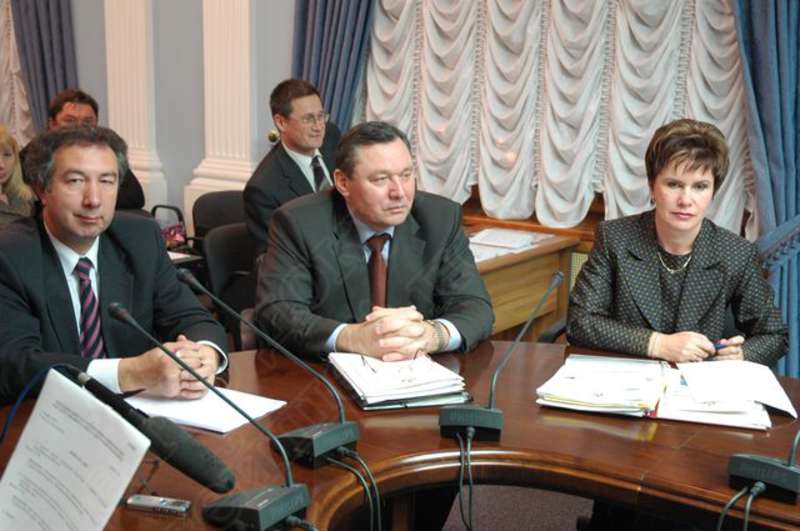 —//— | Заседание депутатской фракции "Единая Россия" Госсовета УР, посвященное рассмотрению проекта бюджета УР на 2006г. Участники заседания (справа налево): председатель постоянной комиссии по бюджету, налогам и финансам Госсовета УР Широбокова Софья Эльфатовна, заместитель Председателя Правительства УР - министр финансов УР Бельтюков Владимир Васильевич | 14 ноября 2005 | JPЕG, эл.фотодок, диск, хорошее |