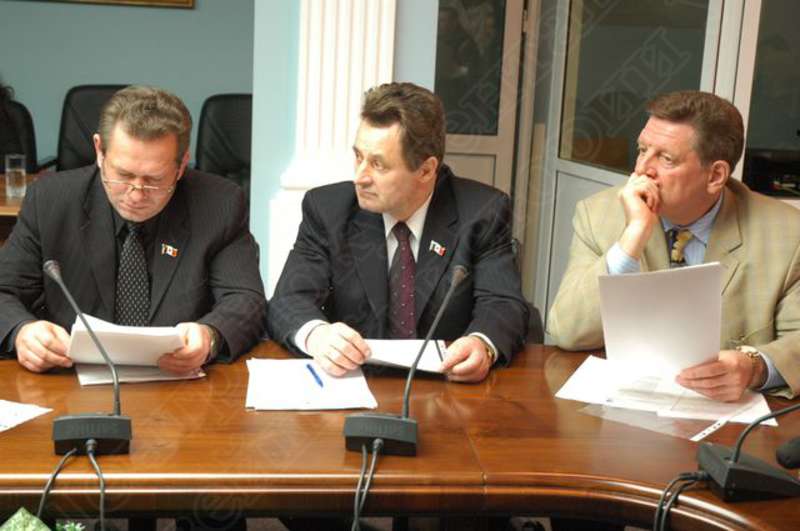 —//— | Заседание депутатской фракции "Единая Россия" Госсовета УР, посвященное рассмотрению проекта бюджета УР на 2006г. Участники заседания (слева направо): председатель постоянной комиссии по национальной политике, общественной безопасности, регламенту и организации работы Госсовета УР Фоминов Александр Михайлович, Председатель Национального банка УР Каримов Равиль Мухаметович | 14 ноября 2005 | JPЕG, эл.фотодок, диск, хорошее |