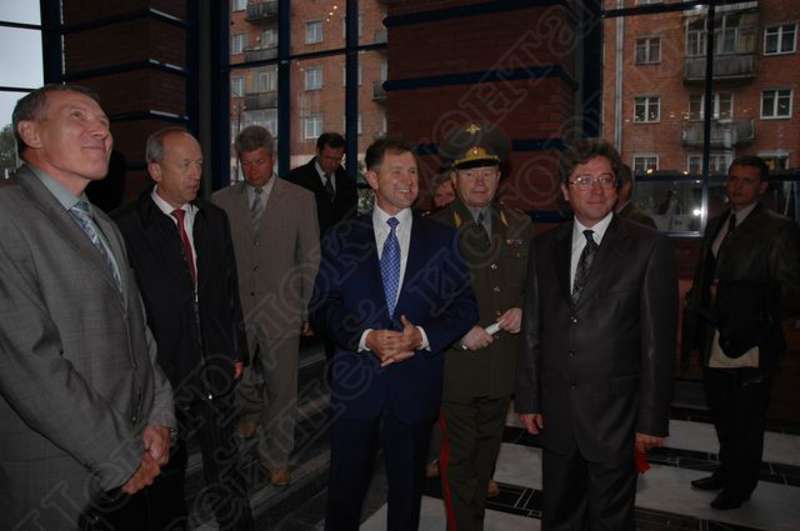 —//— | Торжественное открытие фойе Государственного цирка Удмуртии. Участники открытия (слева направо): 2-й - Председатель Правительства УР Питкевич Юрий Степанович, 3-й - мэр города Ижевска Балакин Виктор Васильевич, 4-й - Президент УР Волков Александр Александрович, 5-й - начальник Управления специального строительства по территории №6 при Спецстрое России Курбатов Александр Павлович, 6-й - генеральный директор Государственного цирка Удмуртии Иванов Дмитрий Евгеньевич | 5 сентября 2005 | JPЕG, эл.фотодок, диск, хорошее |
