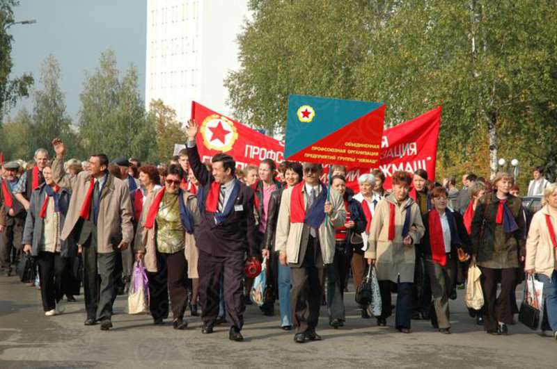 —//— | Демонстрация, организованная профсоюзными организациями оборонных и машиностроительных предприятий Удмуртии на Центральной площади г. Ижевска. Колонна представителей Объединенной профсоюзной организации предприятий группы "Ижмаш". Снимок 2 | 15 сентября 2005 | JPЕG, эл.фотодок, диск, хорошее |