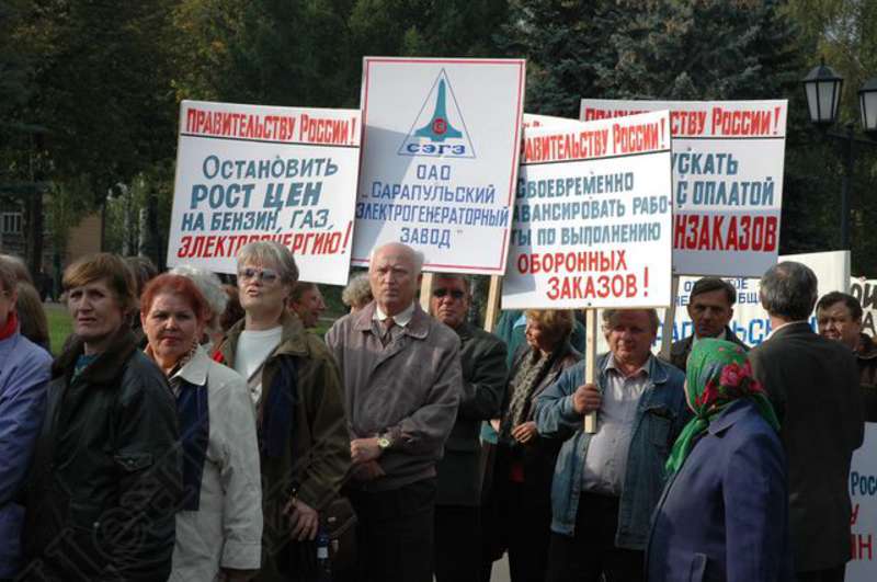 —//— | Демонстрация, организованная профсоюзными организациями оборонных и машиностроительных предприятий Удмуртии на Центральной площади г. Ижевска. Колонна представителей Открытого акционерного общества "Сарапульский электрогенераторный завод" | 15 сентября 2005 | JPЕG, эл.фотодок, диск, хорошее |