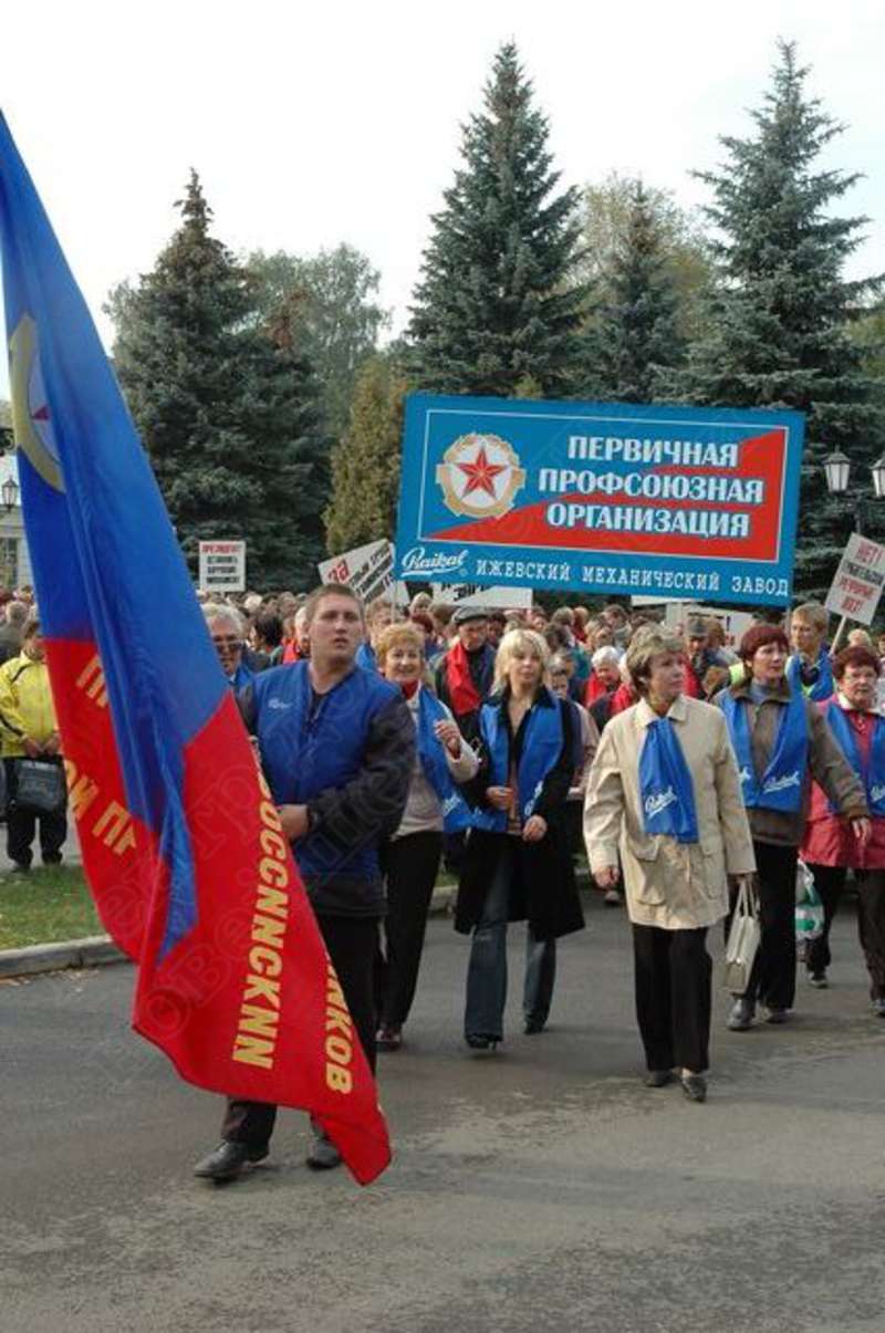 Коллекция фотодокументов | Демонстрация, организованная профсоюзными организациями оборонных и машиностроительных предприятий Удмуртии на Центральной площади г. Ижевска. Колонна представителей первичной профсоюзной организации Федерального государственного унитарного предприятия "Ижевский механический завод" | 15 сентября 2005 | JPЕG, эл.фотодок, диск, хорошее |
