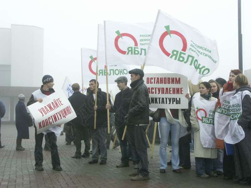 —//— | Пикет-митинг против инициатив Президента РФ по реформированию избирательной системы, организованный региональными отделениями СПС, КПРФ, "Яблоко" у здания Госсовета УР. Снимок 4 | 28 октября 2004 | JPЕG, эл.фотодок, диск, хорошее |
