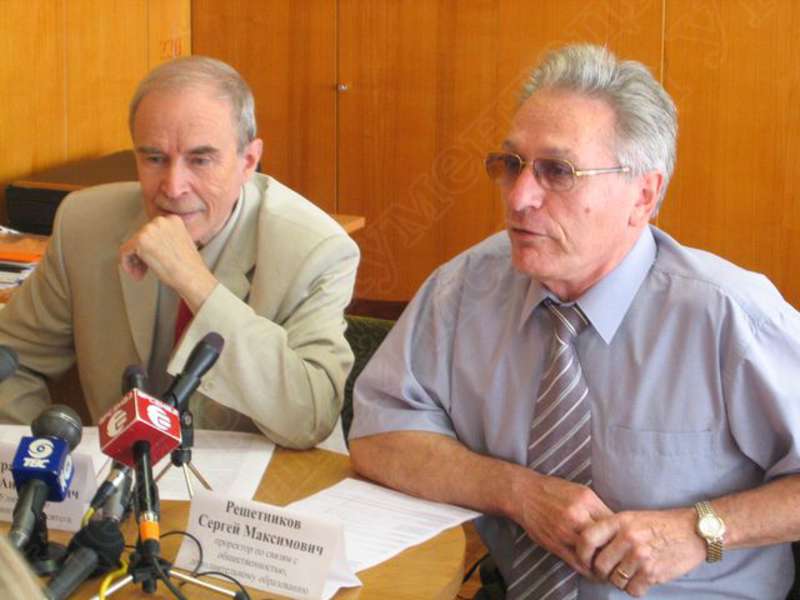 —//— | Пресс-конференция ректората Удмуртского государственного университета. Участники пресс-конференции (слева направо): ректор Журавлев Виталий Анатольевич, проректор по дополнительному образованию, связям с общественностью и средствами массовой информации Решетников Сергей Максимович | 30 августа 2004 | JPЕG, эл.фотодок, диск, хорошее |