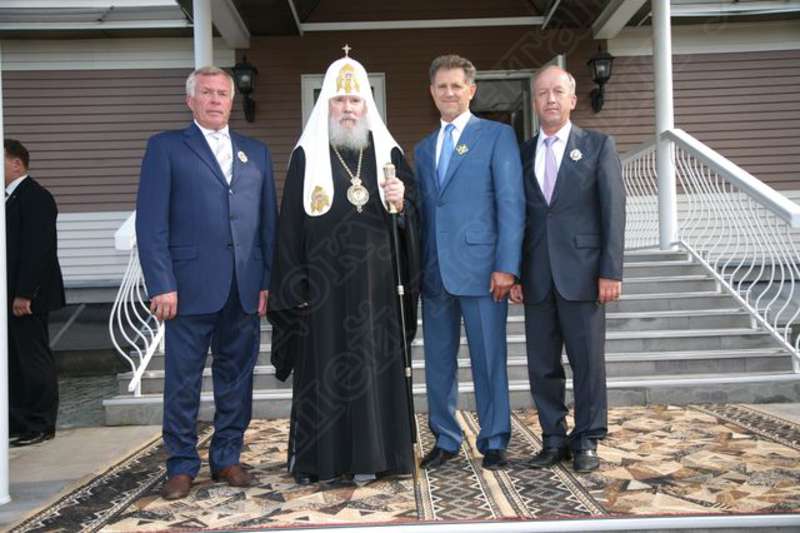 —//— | Участники торжественного приема по случаю освящения Свято- Михайловского собора на Центральной площади (слева направо): начальник Управления Федеральной службы исполнения наказаний УР Желудов Григорий Владимирович, генеральный директор ДАО "Спецгазавтотранс" ОАО "Газпром" Тумаев Владимир Алексеевич, Президент УР Волков Александр Александрович, Святейший Патриарх Московский и всея Руси Алексий II | 5 августа 2007 | JPЕG, эл.фотодок, диск, хорошее | |