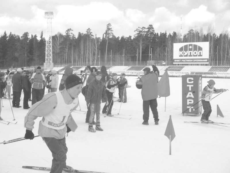 —//— | Республиканские соревнования по лыжным гонкам на приз олимпийской чемпионки Т.И. Тихоновой на стадионе "Купол" в Парке культуры и отдыха им. С.М. Кирова. Участники соревнования. Снимок 1 | 30 марта 2006 | TIF, эл.фотодок, диск, хорошее |