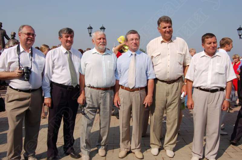 —//— | Торжественное открытие памятника Ижевским оружейникам. Участники мероприятия у памятника Ижевским оружейникам 1 -й ряд (слева направо): 1 - й - Захваткин Валерий Николаевич, генеральный директор ФГУП "Ижевский механический завод"; 3- й - Шумилов Евгений Фёдорович, искусствовед, доктор исторических наук; 4- й - Питкевич Юрий Степанович, Председатель Правительства УР; 5-й - Гродецкий Владимир Павлович, генеральный директор ОАО "Ижмаш"; 6- й - Волков Александр Александрович, Президент УР; 7-й - Семенов Игорь Николаевич, Председатель Госсовета УР; 8-й - Кобзев Александр Николаевич, главный федеральный инспектор по УР | 4 августа 2007 | JPEG, эл.фотодок, диск, хорошее |