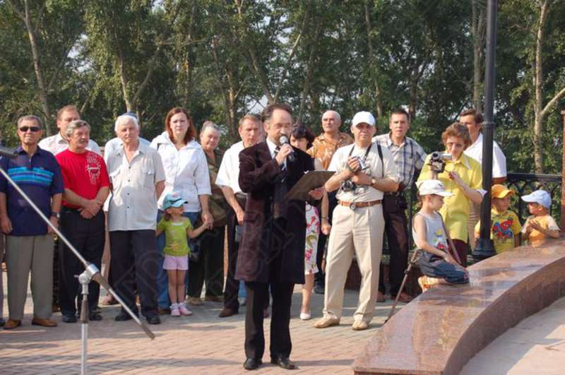 Коллекция фотодокументов | Торжественное открытие памятника Ижевским оружейникам. Ведущий церемонии открытия - Мустаев Александр Гаевич, заслуженный артист УАССР и РФ, актер Государственного театра кукол УР | 4 августа 2007 | JPEG, эл.фотодок, диск, хорошее |