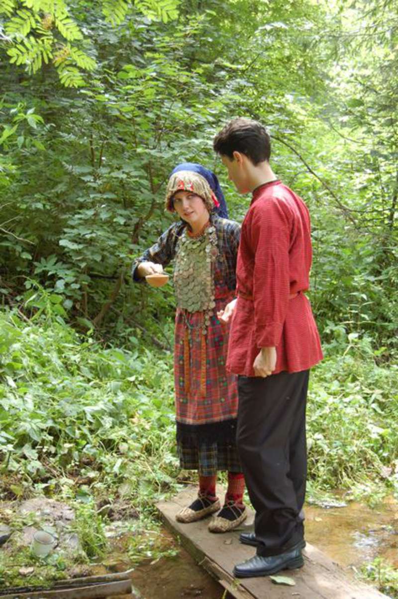 —//— | Удмуртский свадебный обряд в архитектурно - этнографическом музее - заповеднике "Лудорвай". Молодожены у "священного" родника | 28 июля 2007 | JPEG, эл.фотодок, диск, хорошее |
