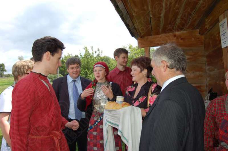 —//— | Удмуртский свадебный обряд в архитектурно - этнографическом музее - заповеднике "Лудорвай". Родители невесты встречают жениха хлебом и маслом | 28 июля 2007 | JPEG, эл.фотодок, диск, хорошее |