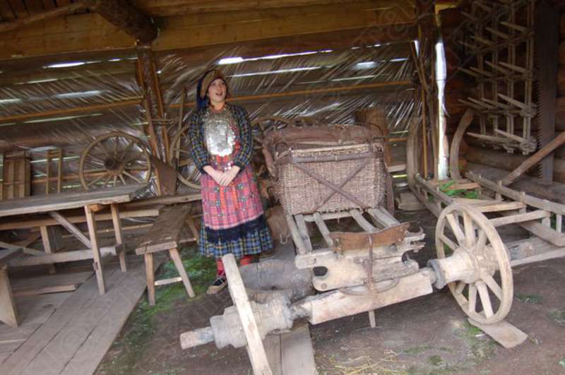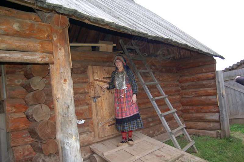 —//— | Удмуртский свадебный обряд в архитектурно - этнографическом музее - заповеднике "Лудорвай". Невеста в удмуртском национальном наряде проводит экскурсию по усадьбе южных удмуртов. Снимок 1 | 28 июля 2007 | JPEG, эл.фотодок, диск, хорошее |