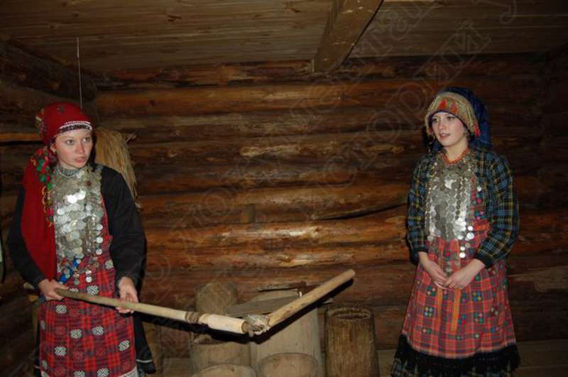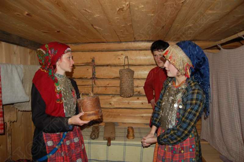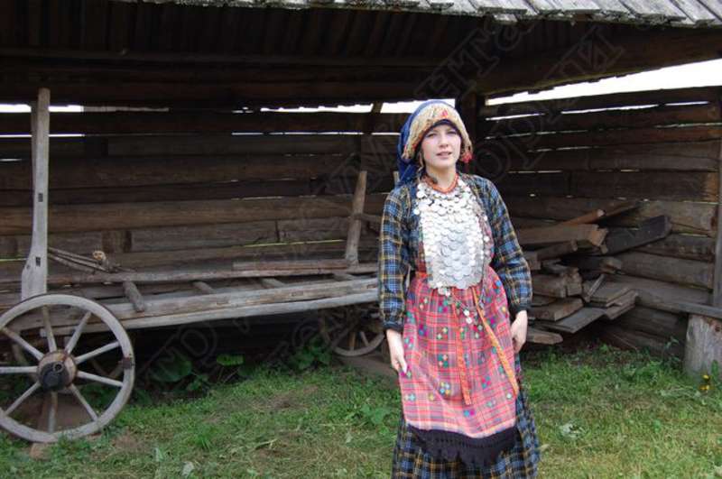 —//— | Удмуртский свадебный обряд в архитектурно - этнографическом музее - заповеднике "Лудорвай". Невеста в удмуртском национальном наряде проводит экскурсию по усадьбе южных удмуртов. Снимок 5 | 28 июля 2007 | JPEG, эл.фотодок, диск, хорошее |