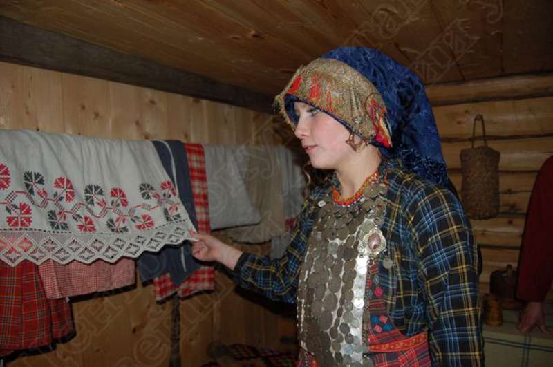 —//— | Удмуртский свадебный обряд в архитектурно - этнографическом музее - заповеднике "Лудорвай". Невеста в удмуртском национальном наряде в куале (молитвенное строение) | 28 июля 2007 | JPEG, эл.фотодок, диск, хорошее |