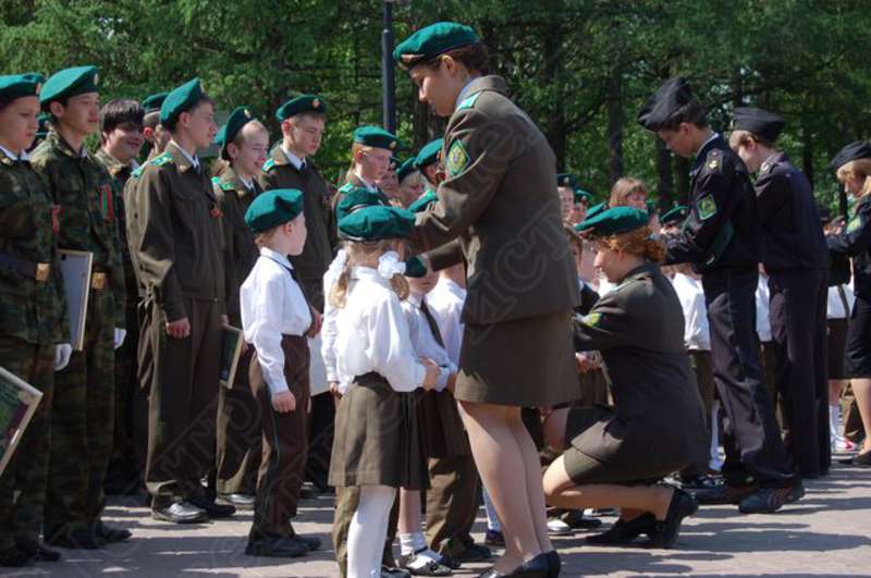 —//— | Торжественное мероприятие, посвященное празднованию Дня пограничника у Монумента боевой и трудовой славы, посвященного подвигу трудящихся Удмуртии в годы Великой Отечественной войны 1941-1945 гг. Выпускники детско-юношеского центра им. С. Борина "Граница" вручают береты пограничных войск воспитанникам детского сада № 247 г. Ижевска | 28 мая 2007 | JPEG, эл.фотодок, диск, хорошее |