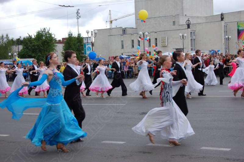 —//— | Праздничное шествие жителей г. Ижевска "Ижевск - спортивный", посвященное Дню города. Выступление спортсменов Федерации танцевального спорта Удмуртии на ул. Пушкинская | 12 июня 2006 | JPEG, эл.фотодок, диск, хорошее |