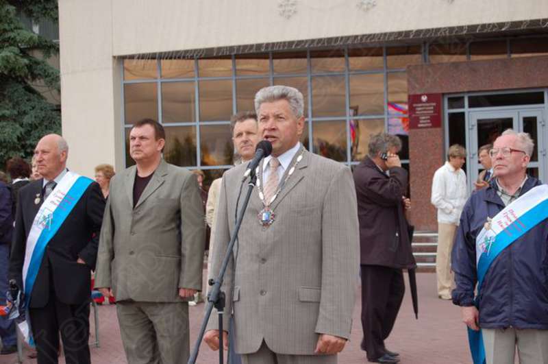 —//— | Праздничное шествие жителей г. Ижевска "Ижевск - спортивный", посвященное Дню города. Выступает Балакин Виктор Васильевич, глава МО "город Ижевск"; на втором плане (слева направо): Беселев Вульф Исаакович, Почетный гражданин г. Ижевска; Кобзев Александр Николаевич, Главный федеральный инспектор по УР; Волков Александр Александрович, Президент УР; Туганаев Виктор Васильевич, биолог-ботаник, профессор Удмуртского государственного университета, доктор биологических наук, Почетный гражданин г. Ижевска | 12 июня 2006 | JPEG, эл.фотодок, диск, хорошее |
