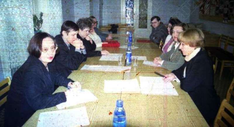 —//— | Заседание республиканской межведомственной комиссии по рассекречиванию документов КПСС при Председателе Правительства Удмуртской Республики. Справа налево: начальник отдела информации и публикации документов ЦДНИ УР Дерюшев Анатолий Борисович; заместитель директора Центрального государственного архива Безносова Ольга Михайловна; председатель Комитета по делам архивов при Правительстве Удмуртской Республики Коробейникова Надежда Кузьминична; заместитель директора ЦДНИ УР Ушакова Елена Мурмановна; заместитель председателя Комитета по делам архивов при Правительстве Удмуртской Республики Рогожникова Наталья Львовна; директор ЦДНИ УР Василечко Наталья Владимировна; начальник организационно-аналитического отдела Комитета по делам архивов при Правительстве Удмуртской Республики Белова Елена Анатольевна; главный специалист организационно-аналитического отдела Комитета по делам архивов при Правительстве Удмуртской Республики Опарина Вера Дмитриевна | 11 декабря 2002 | негатив, пленка, удовлетворительное | |