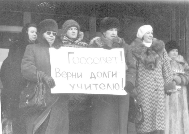 —//— | Пикетирование Государственного Совета УР учителями школ г.Ижевска. Групповой снимок. Учителя школы №7. Слева направо: Мошкина Людмила Ипполитовна, Корепанова Анна Юрьевна, Телегина Галина Викторовна, Кокоулина Валентина Анатольевна | 17 марта 1998 | 24 х 36 мм, негатив, пленка, удовлет. | |