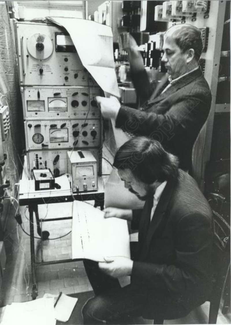 —//— | Инженеры Центральной электросети г. Ижевска (слева направо): Г.С. Поздеев, Б.А. Иванов проверяют аппаратуру в релейном зале | 22 декабря 1987 | позитив, фотобумага, удовлетворительное | ![]() |
