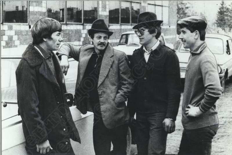 —//— | Работники колхоза им. Суворова Киясовского района (слева направо): водитель Костенков Виталий, механик пункта технического обслуживания Глухов Николай, водитель Коробейников Андрей, водитель Быков Георгий | 24 декабря 1987 | позитив, фотобумага, удовлетворительное | ![]() |