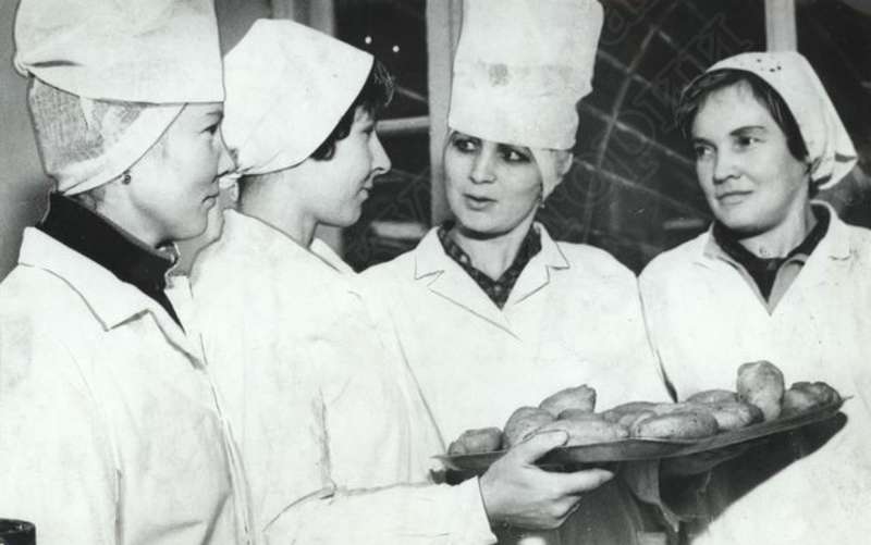 —//— | Работники столовой торгово-бытового центра колхоза "Россия" Можгинского района (слева направо): буфетчица Н.К. Байкузина, раздатчица З.В. Мурашова, повар Г.Н. Карнахова, кухонный работник И.Н. Булдакова | 26 декабря 1987 | позитив, фотобумага, удовлетворительное | ![]() |