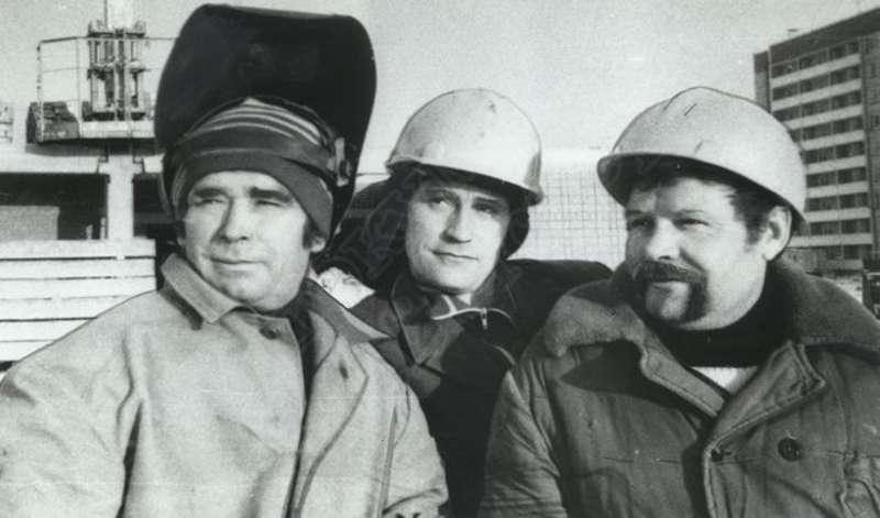 —//— | Члены бригады рабочих СУ №2, передовики производства (слева направо): электрогазосварщик В.В. Торохов, монтажник, победитель социалистического соревнования Кашин Анатолий Васильевич, каменщик Владыкин Геннадий Николаевич | 12 декабря 1987 | позитив, фотобумага, удовлетворительное | ![]() |