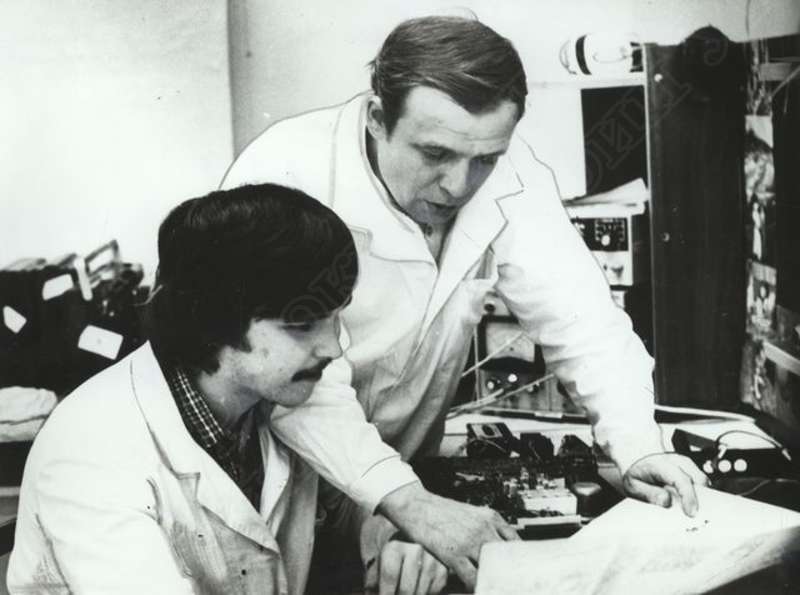 —//— | Работники Ижевского Производственного объединения "Удмурттелерадиобыттехника" (слева направо): радиотехник, ударник коммунистического труда Баженов Валерий, бригадир, победитель социалистического соревнования Гришанов Александр Александрович | 13 декабря 1987 | позитив, фотобумага, удовлетворительное | ![]() |