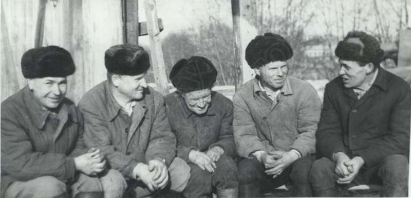 —//— | Бригада плотников Сюмсинского районного производственного управления жилищно-коммунального хозяйства (слева направо): Кашин Петр Савельевич, победитель социалистического соревнования Кашин Григорий Артемьевич, Быстриков Михаил Андреевич, Кузнецов Валентин Степанович, бригадир, победитель социалистического соревнования Батурин Геннадий Николаевич | 4 января 1985 | позитив, фотобумага, удовлетворительное | ![]() |