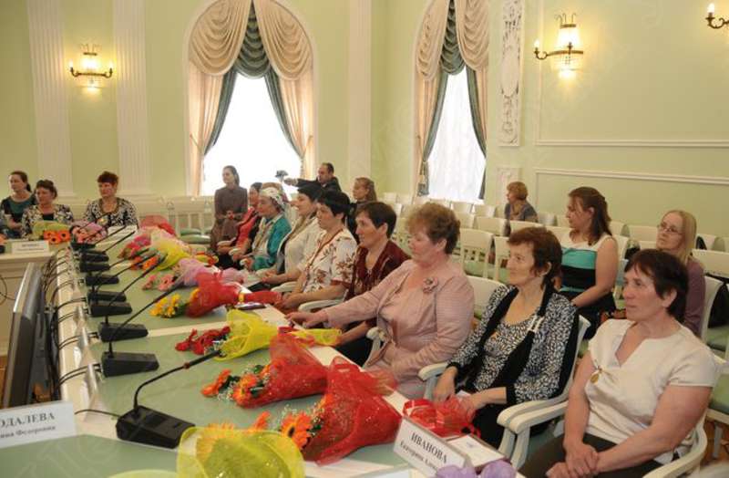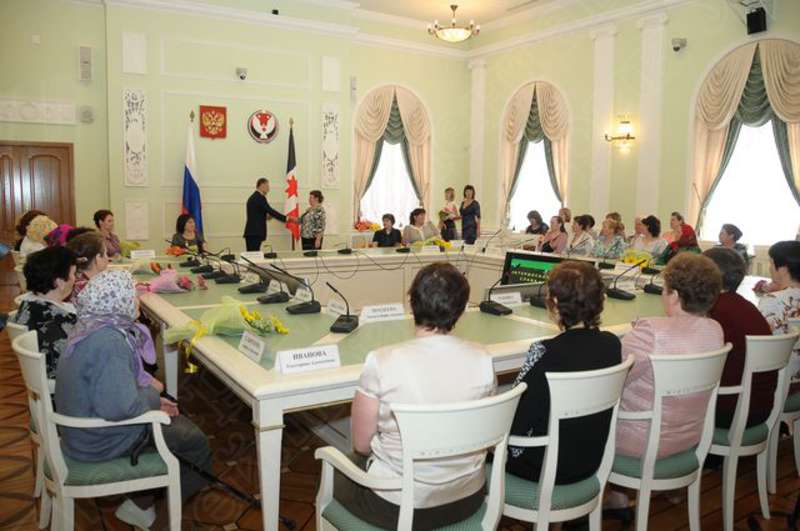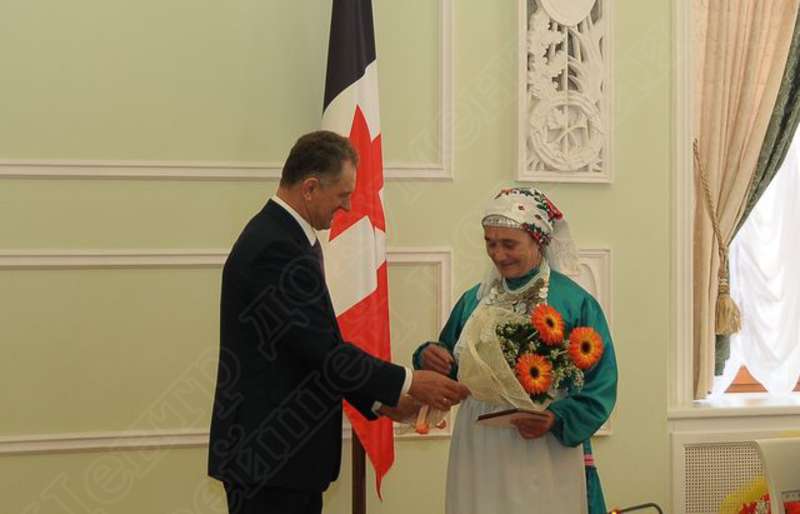 —//— | Торжественный прием в Резиденции Президента УР, посвященный вручению знака отличия "Материнская слава", в г. Ижевске. Знак отличия вручает Президент УР Волков Александр Александрович (слева). Снимок 1 | 7 мая 2013 | JPG, эл.фотодок, диск, хорошее | ![]() |