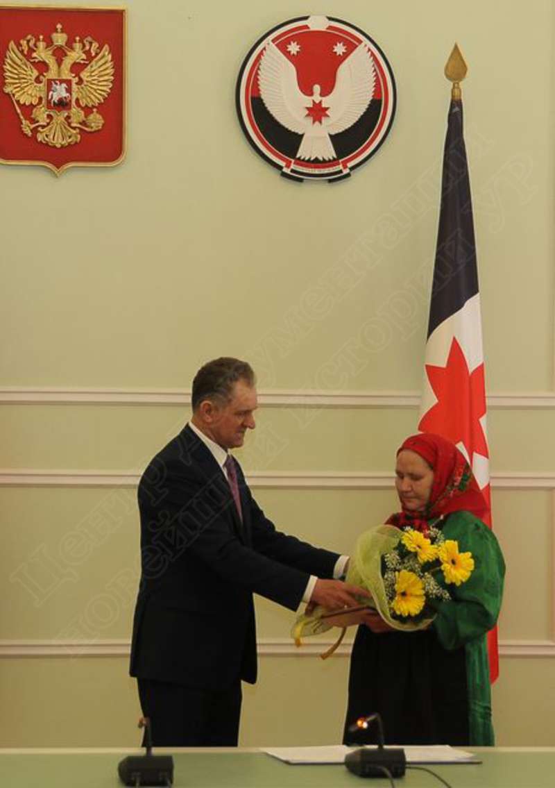 —//— | Торжественный прием в Резиденции Президента УР, посвященный вручению знака отличия "Материнская слава", в г. Ижевске. Знак отличия вручает Президент УР Волков Александр Александрович (слева). Снимок 2 | 7 мая 2013 | JPG, эл.фотодок, диск, хорошее | ![]() |